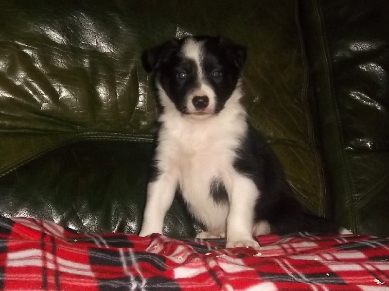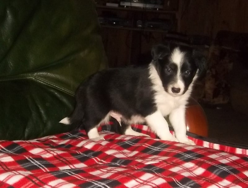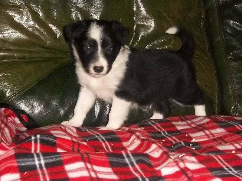Femelle noire et blanche, petit collier blanc, poils mi-longs, oreilles déjà droites